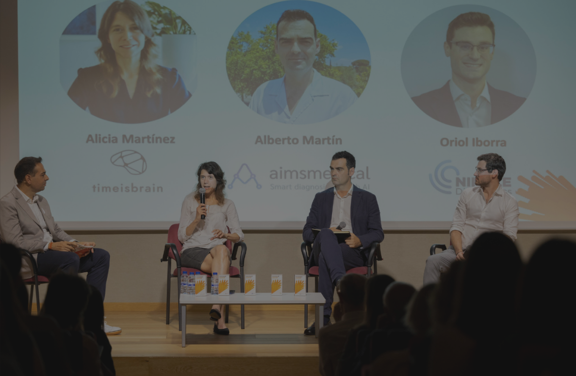 During the event, the 15 finalists presented their projects to a panel of experts. Before the presentations, a panel discussion was held with Alberto Martín, together with Alicia Martínez Piñeiro (Time is Brain) and Oriol Iborra Egea (NIMBLE Diagnostics). During the discussion, Alberto Martín shared the keys to AIMS MEDICAL’s success and offered valuable advice to new entrepreneurs on how to overcome challenges and thrive in the healthcare innovation sector.