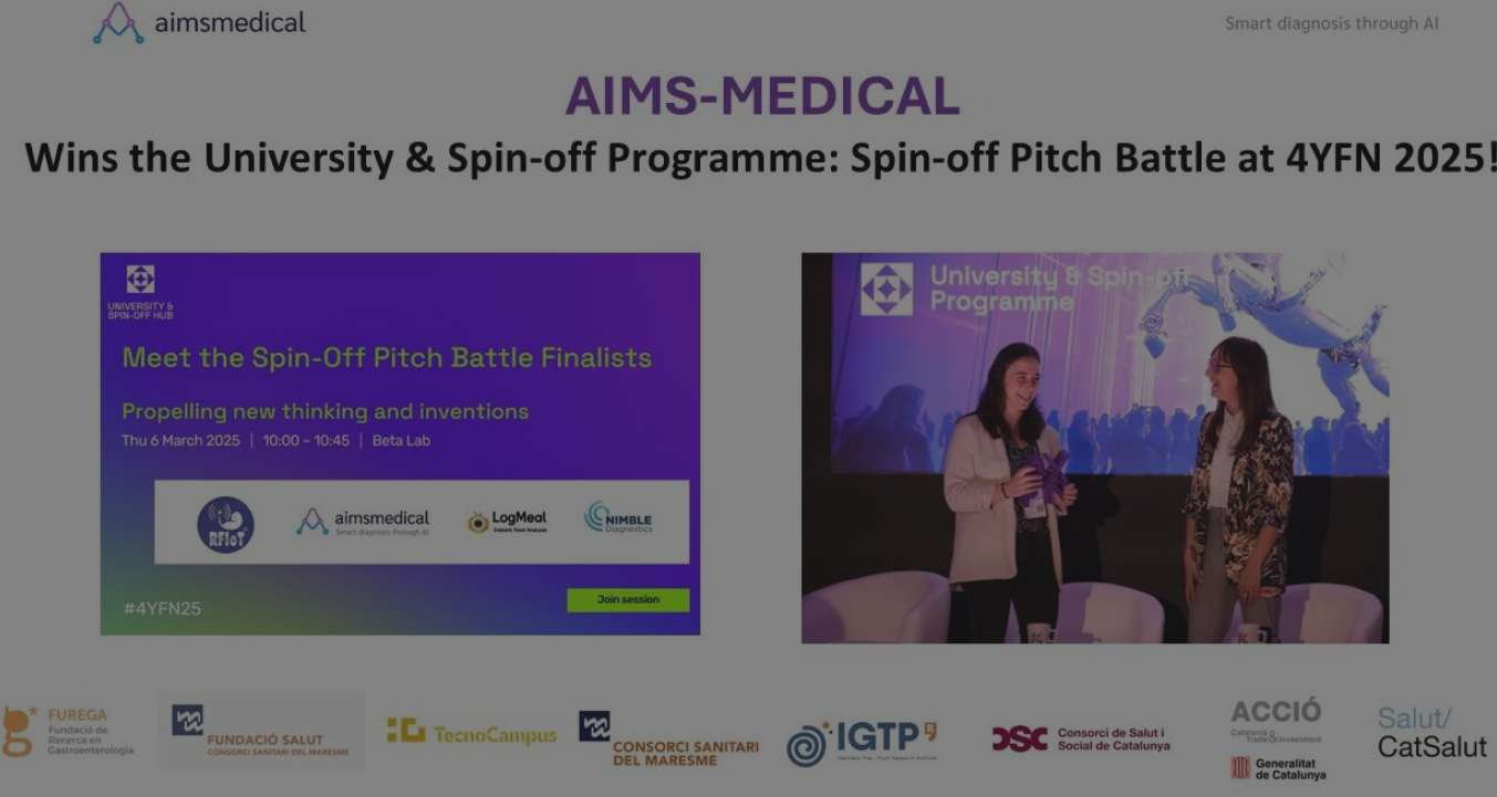 We are delighted to announce that AIMS MEDICALÂ has been selected as a winner of the 4YFN 2025 Spin-off Pitch Battle, as part of the University & Spin-off Programme. This recognition highlights our commitment to innovation in the healthcare sector.